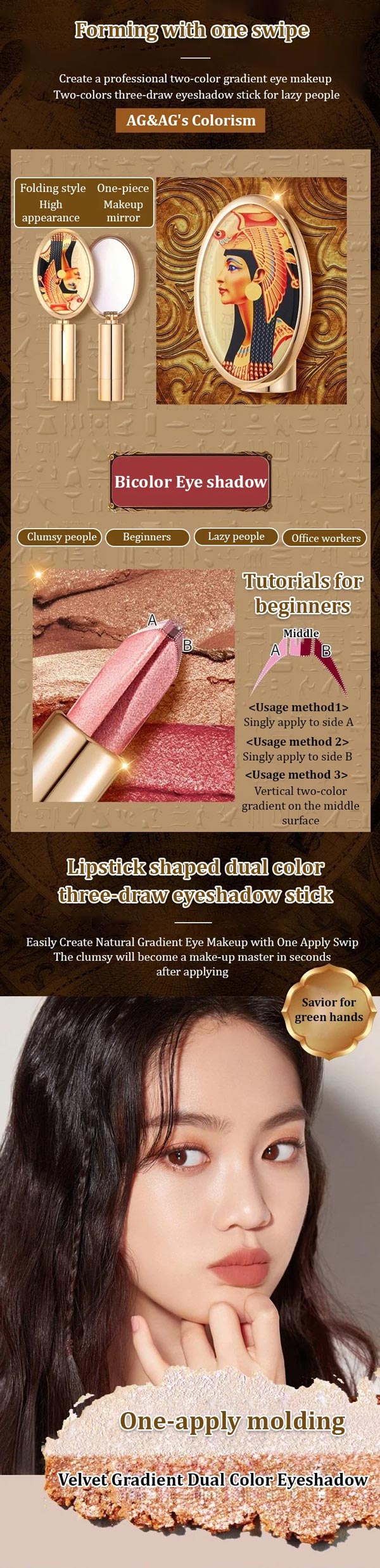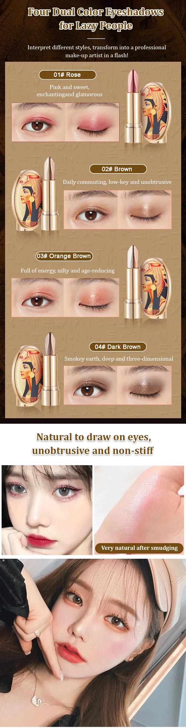 Get ready to dazzle with the Dual-Tone Luxury Lazy Eyeshadow Stick! Achieve effortless glamour with just a swipe of this innovative product.